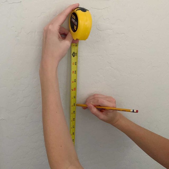 - Measure the height of the desk at the two marked stud locations and mark with a pencil;