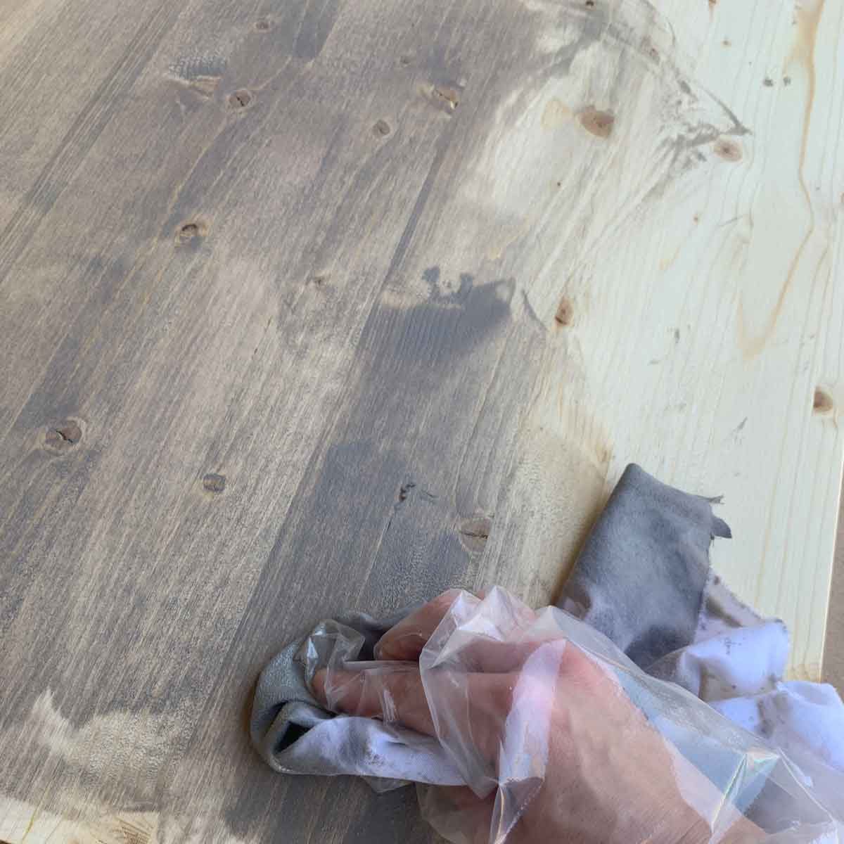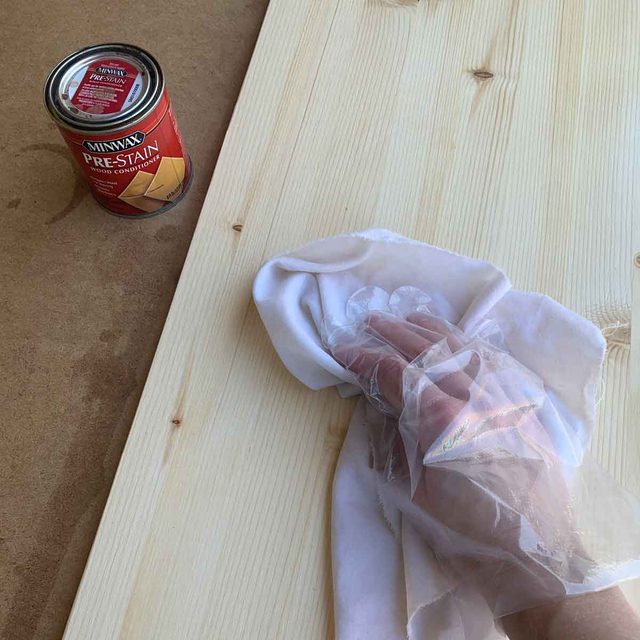 - Apply wood conditioner to the board using clean cloth and protective gloves;