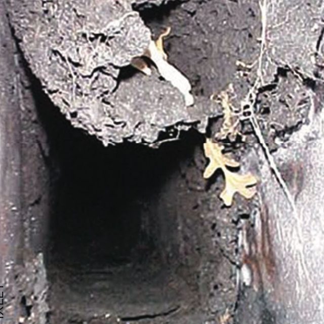 A professional cleaning includes an inspection for soot buildup, obstructions, cracks in the chimney liner and signs of water damage. Older chimneys often have gaps between clay liner sections where the mortar has fallen out.