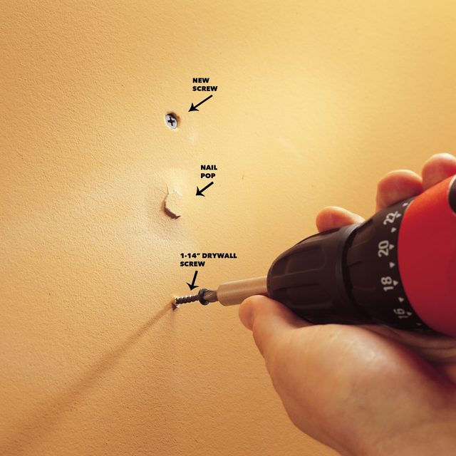 Fix drywall nail and screw pops in four simple steps, using drywall screws and drywall compound.