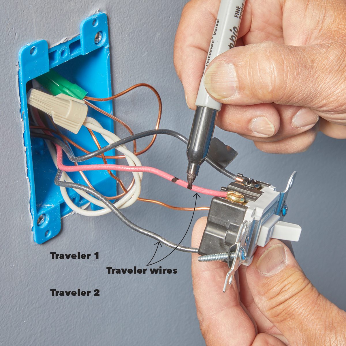 - On each existing switch, you will see the two travelers connected to opposite terminals. These terminals are usually brass colored, and the wires connected to them are typically black and red, but not always.
