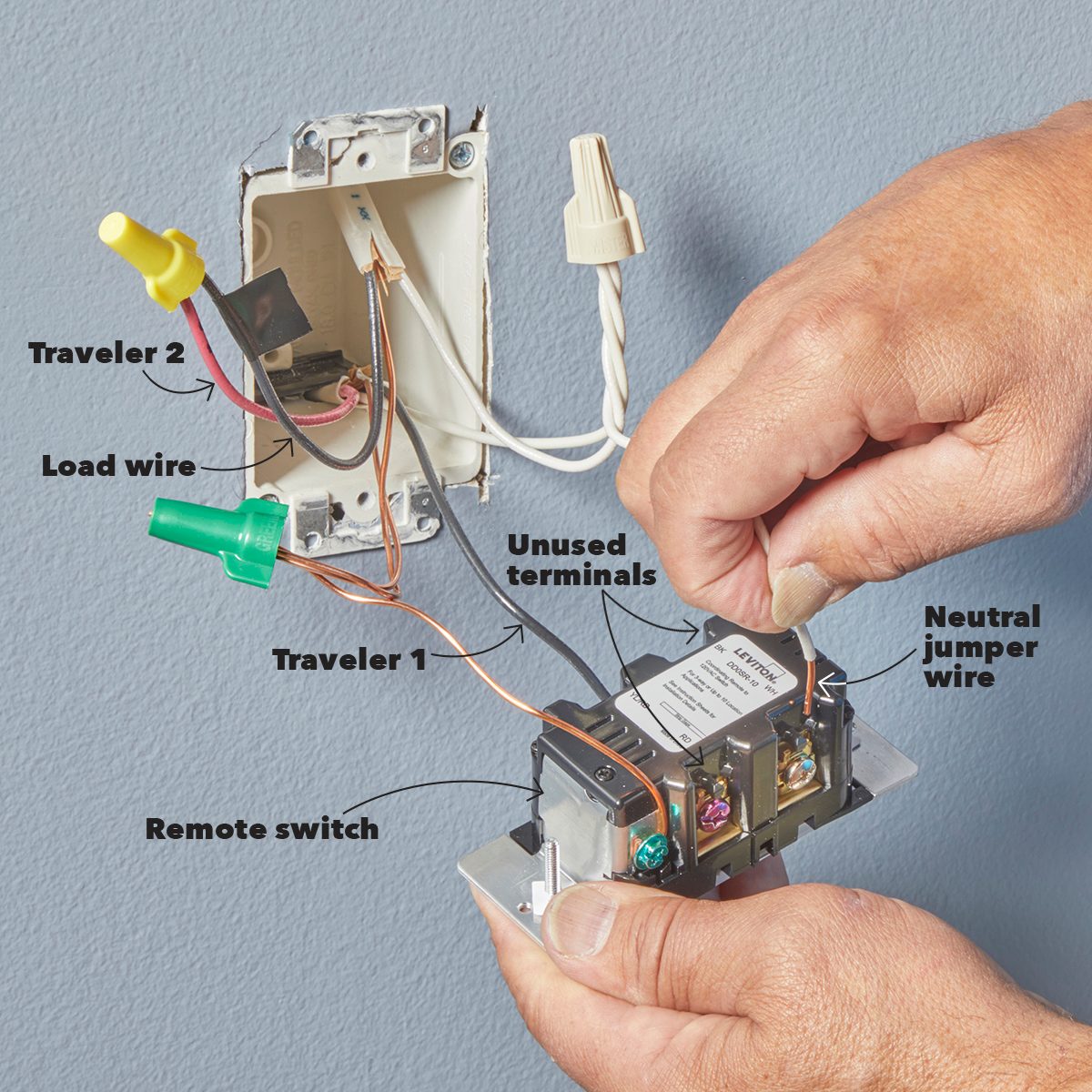 - Note: The traveler that was attached to the YL/RD terminal on the main switch will be attached to the matching YL/RD terminal on the remote switch.