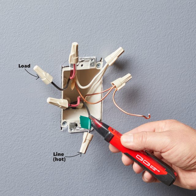 - Carefully use your voltage detector on each of the wires marked with tape to see which one is hot. This hot wire is your line feed; that’s where you will install your main smart switch.