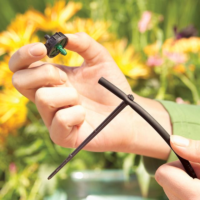 - Tubing stakes and adjustable sprayer. You can mix and match watering devices, but don’t use more than 150 gallons per hour (gph) on a single circuit.