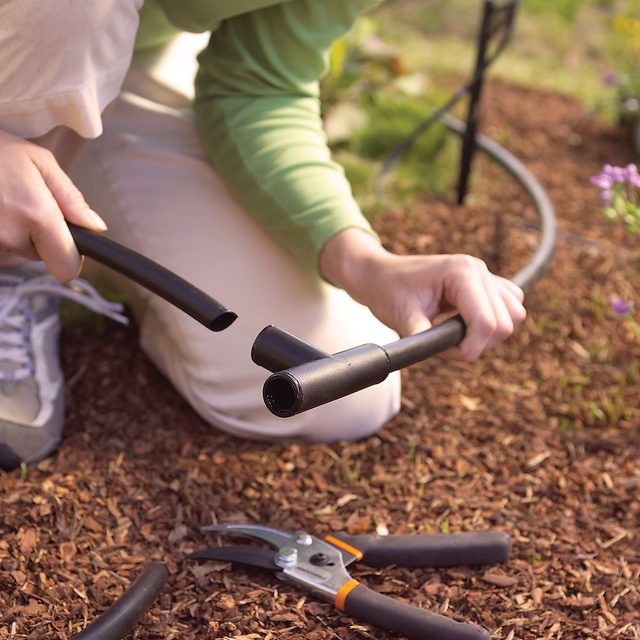 - Connect the 1/2-in. poly tubing to the faucet end, then lay the tubing through the garden according to your plan.