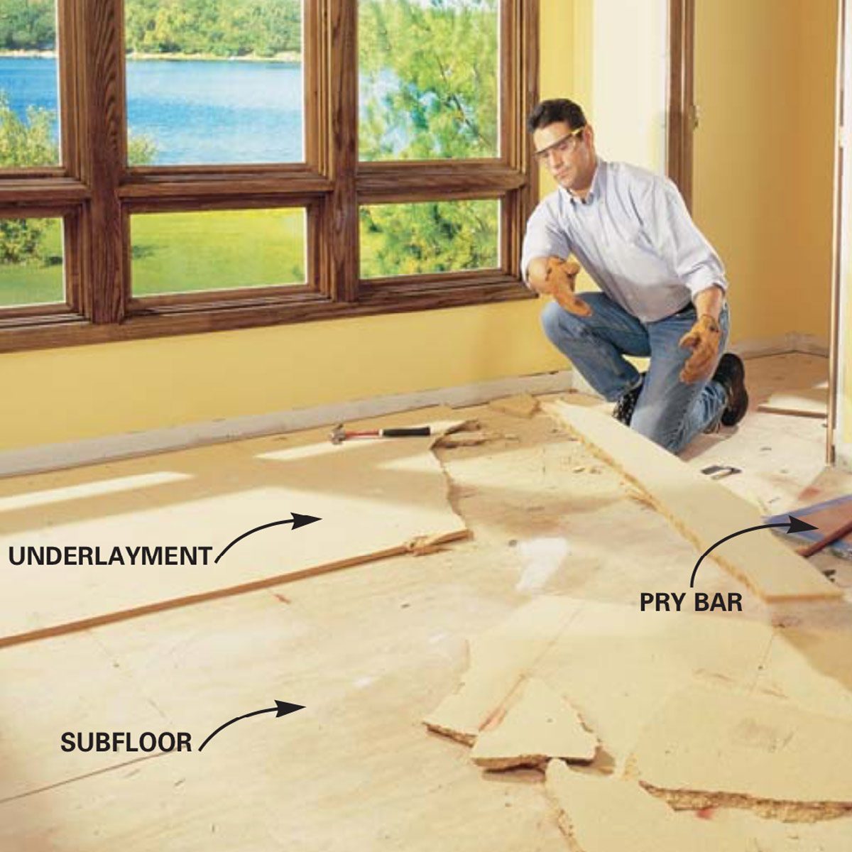 Pry up the floor and underlayment