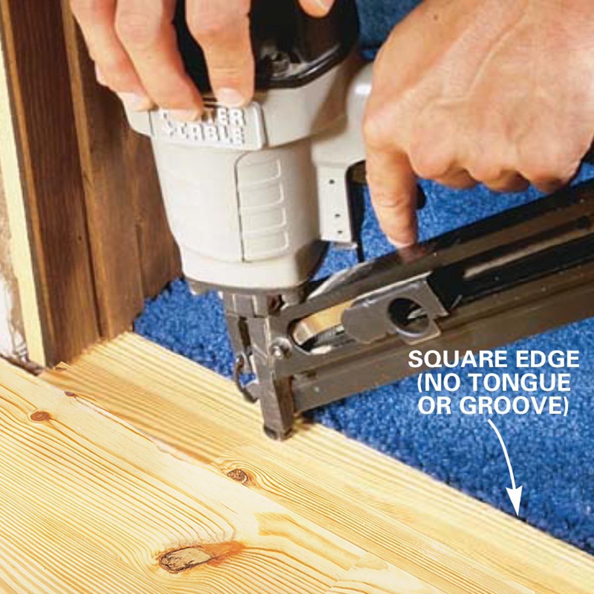 How to install tongue and groove flooring: Hand nail the first board in place