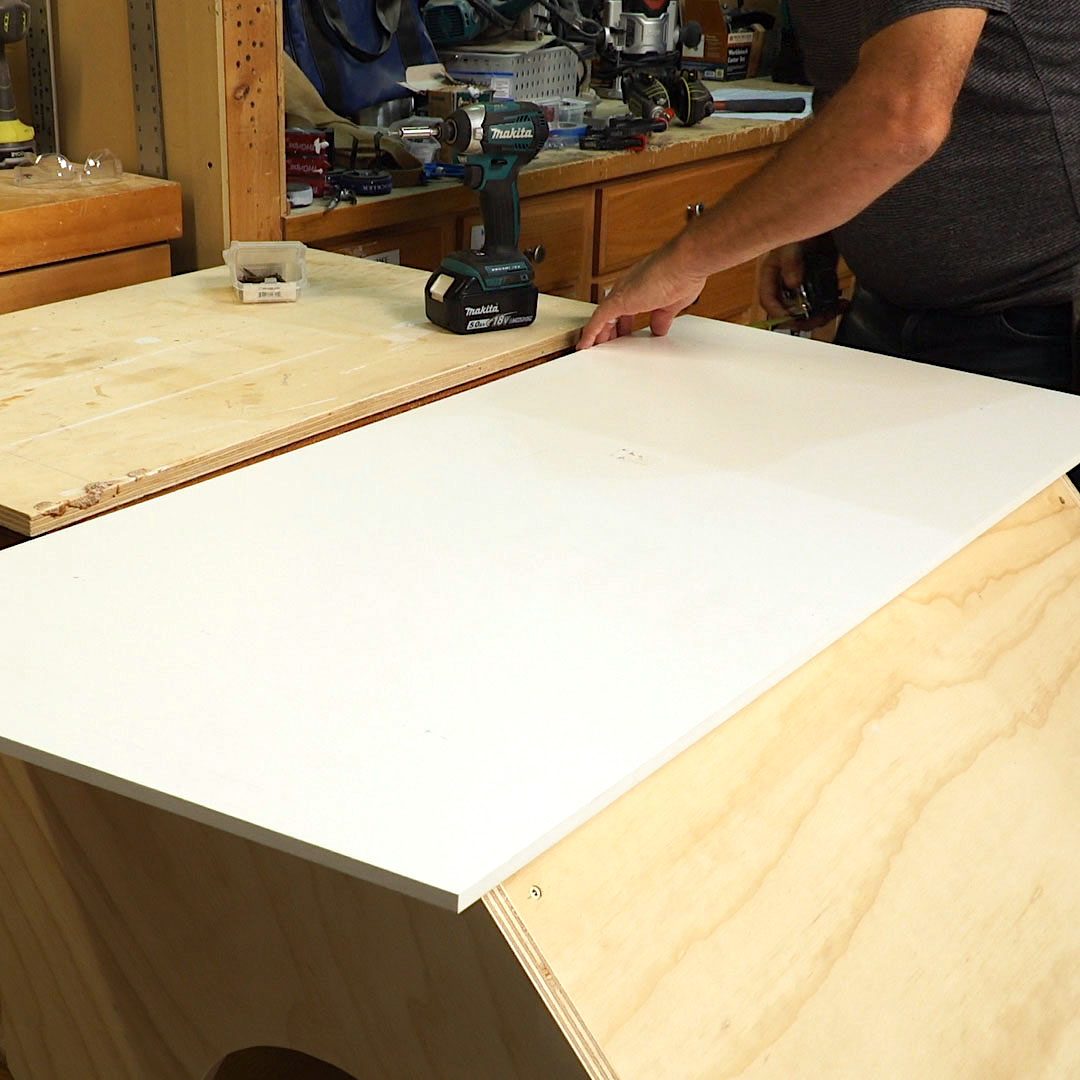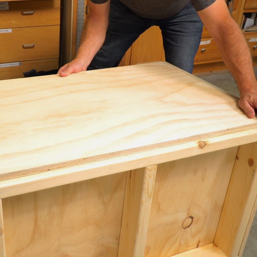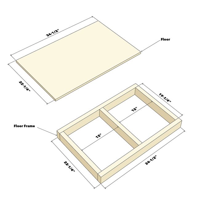 - Place the 22-1/4-in. x 34-1/2-in. plywood floor on the frame, keeping it flush with the edges.