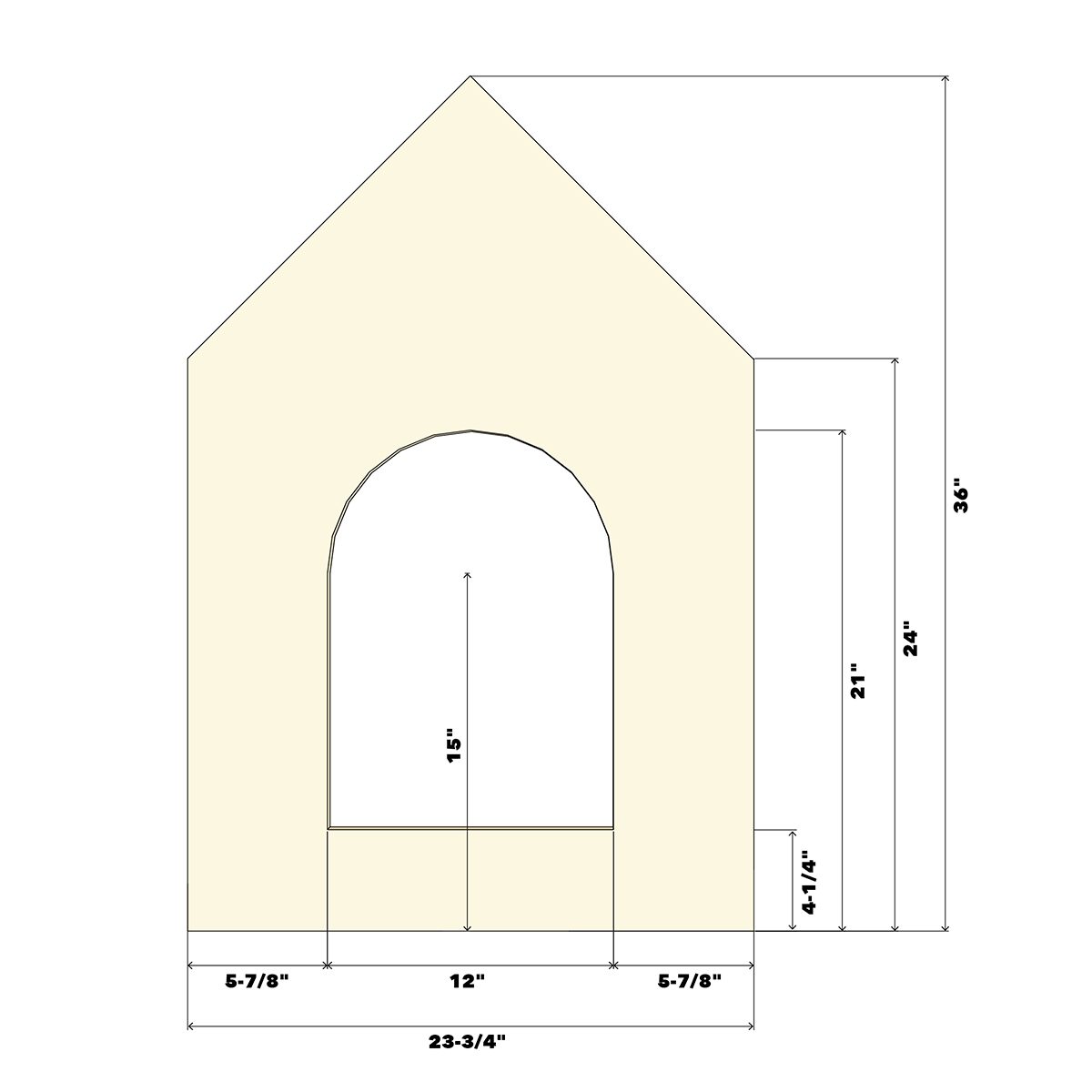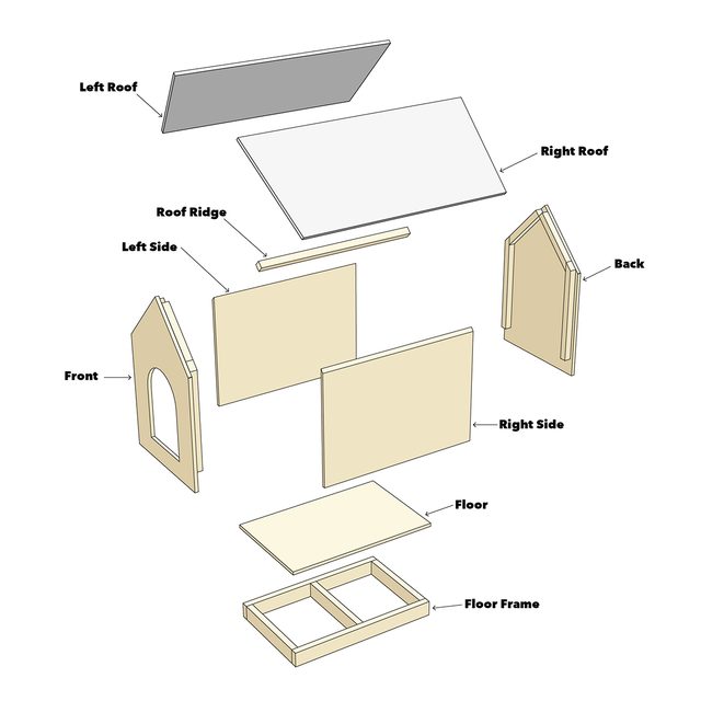 - Place the 20-in. right panel on the right side of the dog house roof letting it overhang three inches off the back.