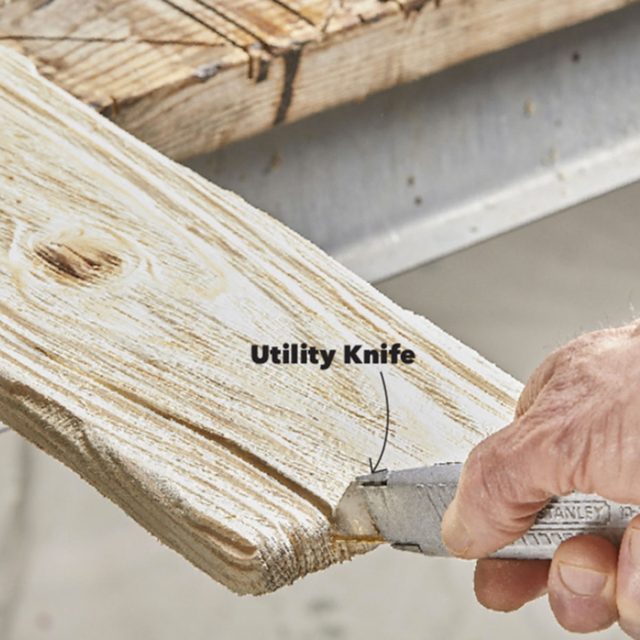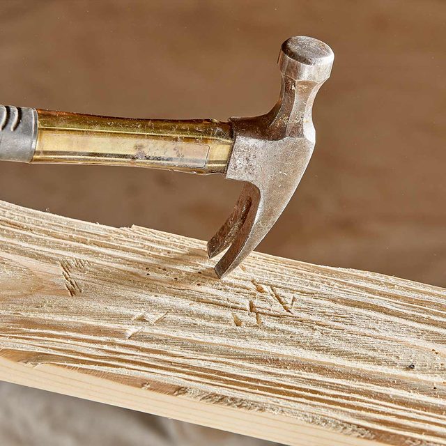 • Note: The steps shown here are to distress one side of the boards. If both sides of the boards will be visible, flip the board over and repeat the steps.