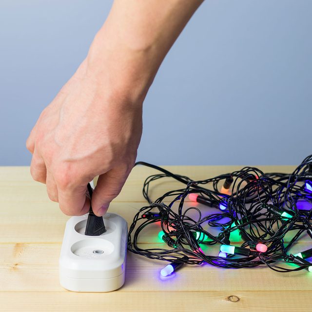 Artificial trees typically come in sections, and you want to make sure that you don’t string one strand of lights between two of these sections. Light each section individually so that when it comes time to take the tree down you can leave the lights on each section without them being connected by strands.