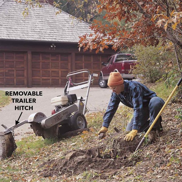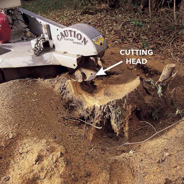 A: Yes, but it requires a strong back. The minimum half-day charge for a basic rental grinder is about $50. In contrast, for your three stumps, a pro might charge $110, at a rate of $2 per inch of stump width. All this means you’ll save 60 bucks, get some exercise, and have fun using a cool tool.