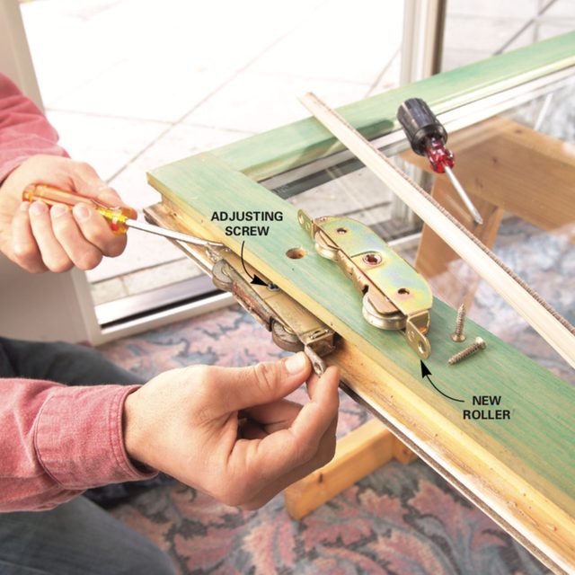 Sliding doors get sticky and hard to open when the wheels are out of adjustment or the track gets dirty. Here's how to repair your sliding door and replace a flimsy screen.