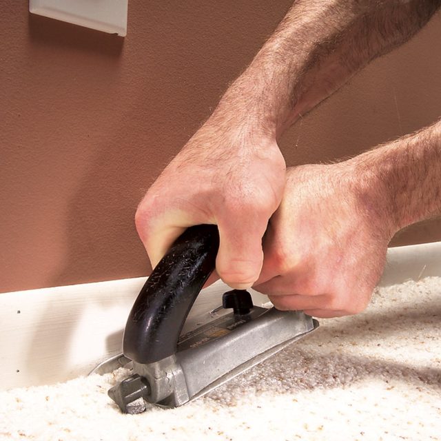A carpet cutter trims the carpet even with the wall or baseboard (Photo 10).