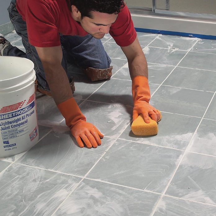 - Wipe grout off the tile surface with a damp sponge. Wipe gently on the first pass so you don’t pull grout out of the joints. Rinse the sponge often.