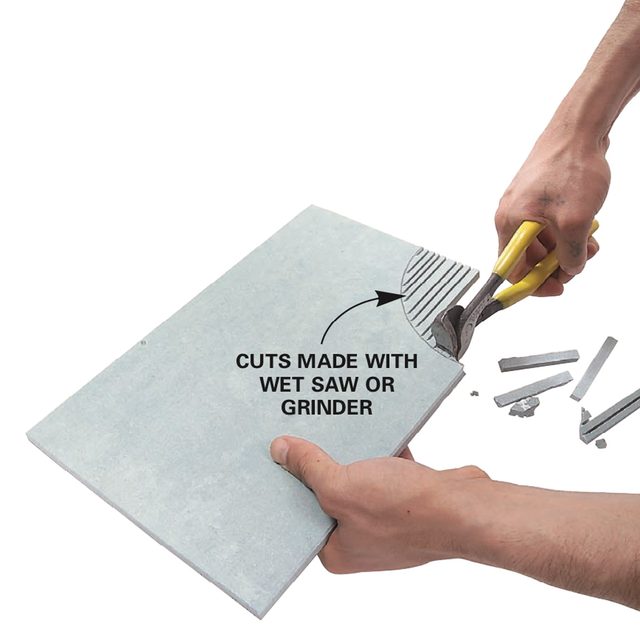- In addition to the tools shown here, a carbide abrasive blade that fits in a jigsaw cuts slowly but leaves fairly clean cuts in softer types of ceramic tile and natural stone. A carbide abrasive hole saw cuts perfect holes for plumbing pipes and fixtures.