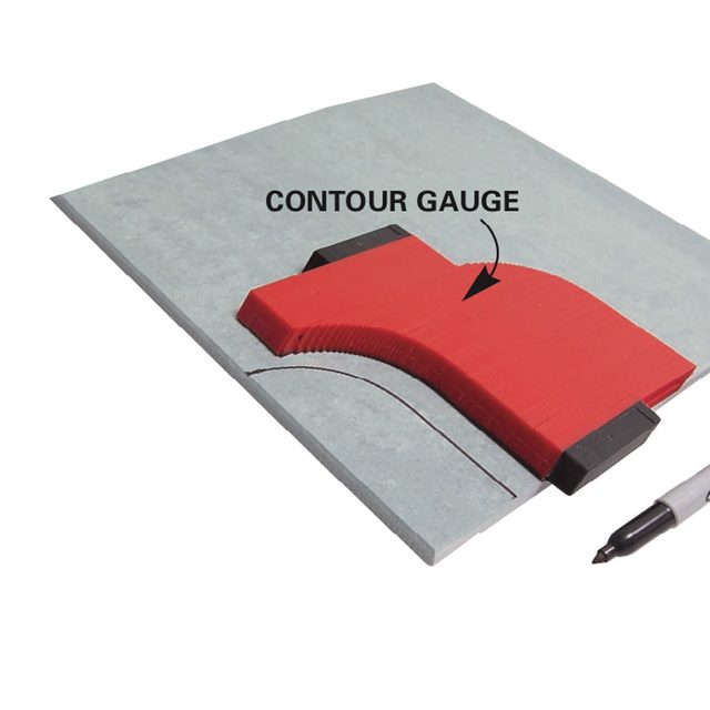- A contour gauge is a great tool for marking troublesome shapes on tile. Just press it against any odd-shaped surface (like the curved corner of a bathtub) and transfer the profile to the tile.