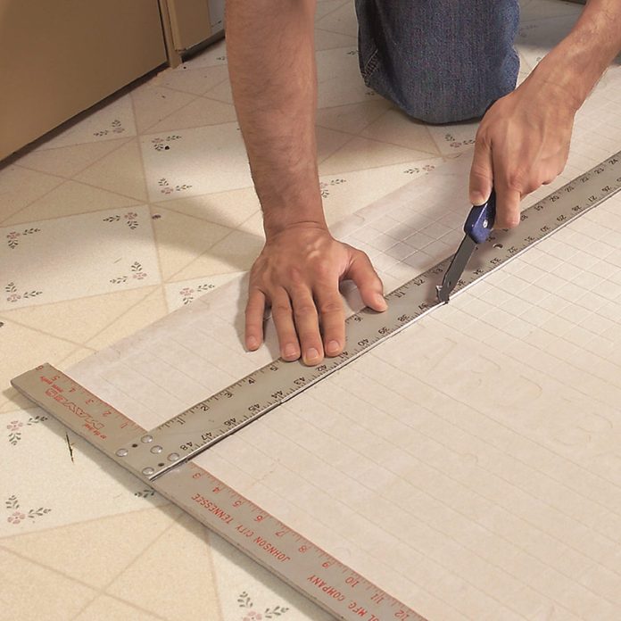 The tile itself will be your biggest cost, so start by measuring the square footage of the floor. Then add 10 percent for cutting waste. If you choose a more complex layout than the simple grid pattern we used, your waste will be greater.