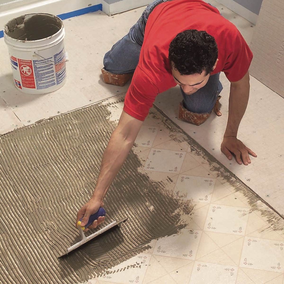 - Pro tip: When learning how to install tile, understand that cement products like thin-set and grout draw moisture from the skin and can even cause burns that require medical attention. While most pros work bare-handed, wear gloves if you have any special sensitivity. Also, wear eye protection while mixing thin-set and grout.