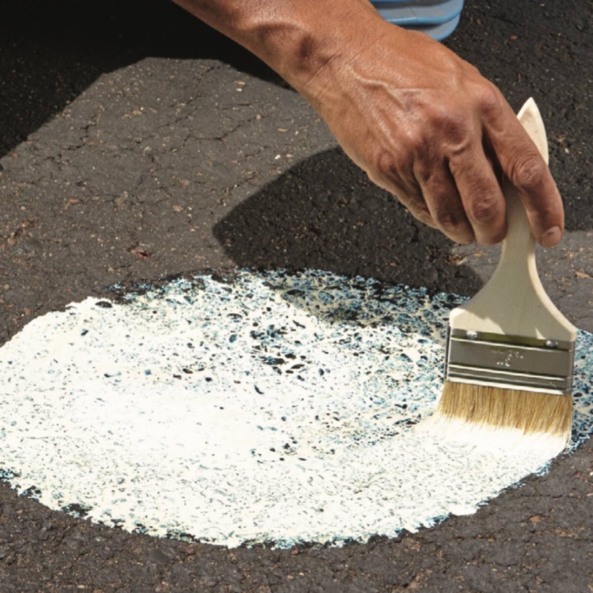 Pour the oil spot primer on the damaged areas and brush it into the pores with a disposable chip brush. Apply a second coat to heavier stains. Let the primer dry fully before applying the driveway sealer. Treat any oil stains with an oil spot primer (Photo 3).