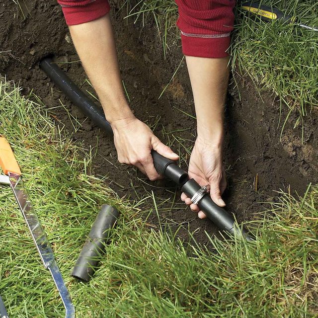 - If the line was damaged by tree roots, reroute the line by digging a new trench away from the tree.