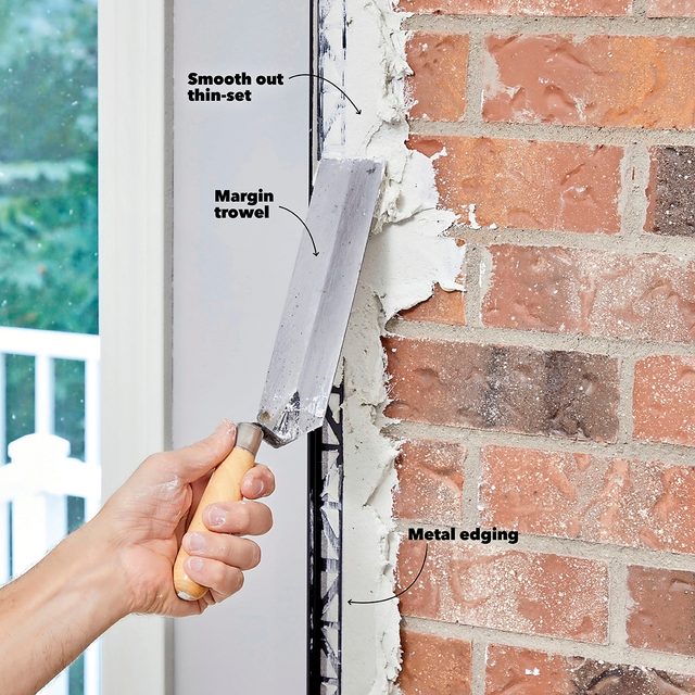 - Use a margin trowel to embed the edging and smooth the thin-set.