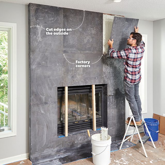 Family Handyman’s first cover story was “How to Repair a Brick Fireplace,” and we’ve been serving up fireplace projects ever since. We showed how to cover brick with tile way back in 1953. Since then, better tools and materials have made it much easier for DIYers to tackle a project like this. Tile manufacturing has improved too, with more choices available, like the large tiles we used for our modern fireplace makeover.