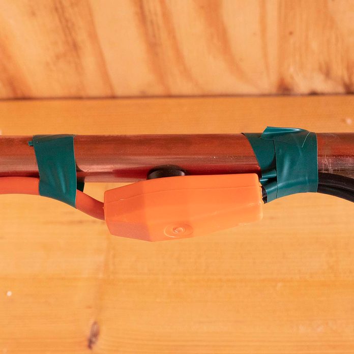 - Connect the heat tape to a heavy-duty extension cord, keeping the plug away from any dripping water. Plug it into a GFCI outlet.