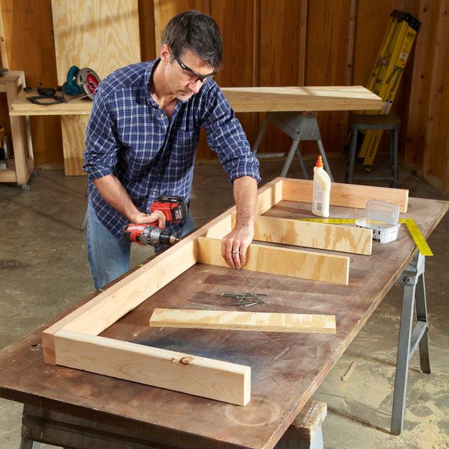 Use this simple workbench plan to build a sturdy, tough workbench that'll last for decades. It has drawers and shelves for tool storage. It's inexpensive. And even a novice can build it in one day.