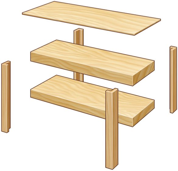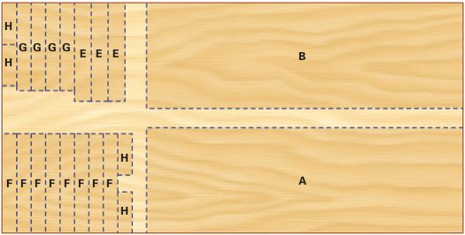 The Cutting Diagram shows how to cut one sheet of 3/4-inch plywood. The second 3/4-inch sheet is much simpler: just cut lengthwise to yield parts C and D. Cut the drawer bottoms (J and K) from a 4 x 4-foot. sheet of 1/4-inch plywood.
