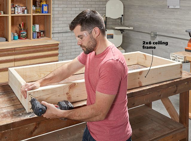 - Build the ceiling frame by screwing 2x6s together.