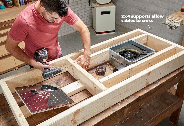 - Drill a 1/4-in. hole above the strip and feed the low-voltage cable inside the ceiling frame for connections later.