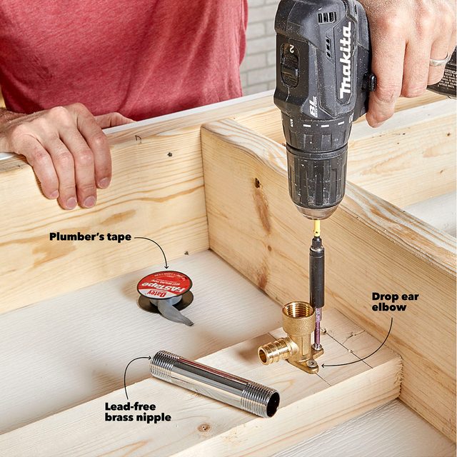 - Note: You’ll need to drill holes through the tile for the plumbing and electrical cable too.