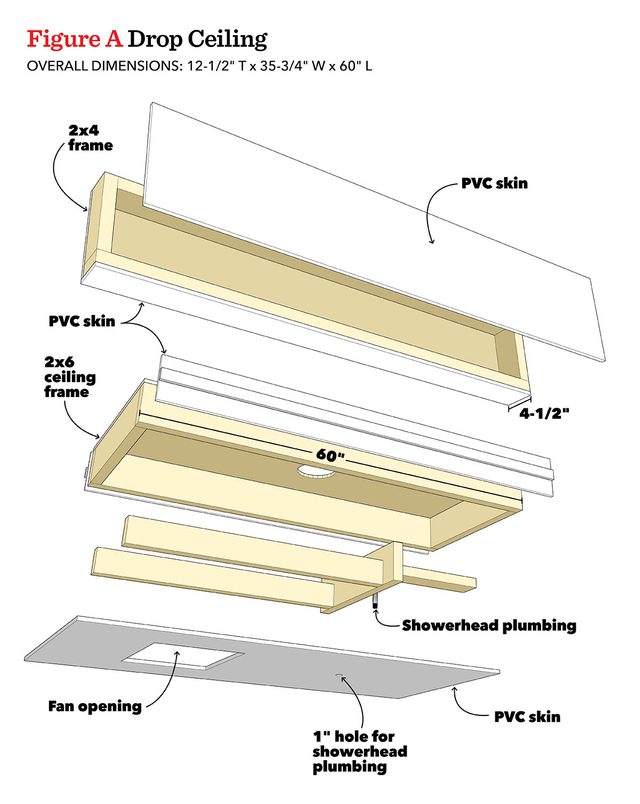 Drop ceilings are common in kitchens and basements, where they hide ductwork, plumbing or beams. Building one above the bathtub might seem a little crazy, but it’s a perfect way to add luxury features without tearing apart your bathroom. I built this ceiling from PVC sheet material, which is waterproof, paintable and easy to work without special tools.