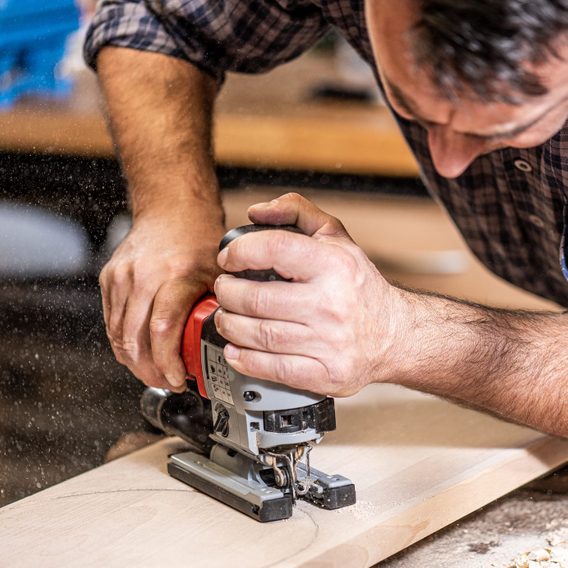 Use a versatile jigsaw tool to cut lumber, plywood, metal and tile.