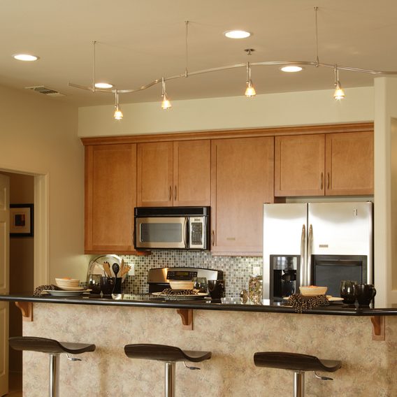 Tired of cooking in the dark? Kitchen track lighting provides multiple light sources, without the hassle of installing multiple fixtures.