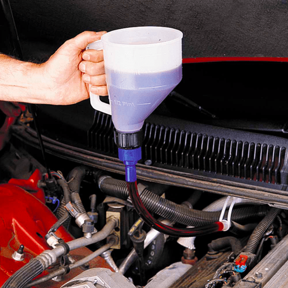 Using the correct type and shape oil funnel helps avoid cleaning up a greasy mess when changing motor oil yourself.