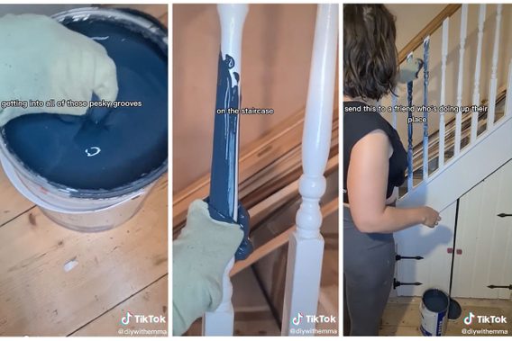 Learn how to paint stair spindles with a sock in this quick-and-easy tutorial.